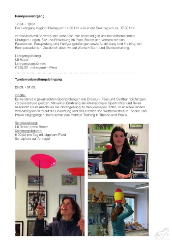 Intensivkurs mit Schwerpunkt Rennpass. Wir beschäftigen uns mit vorbereitenden