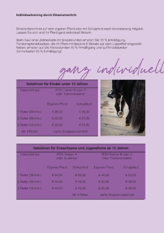 Ab 4 Reiter: siehe Gruppenunterricht