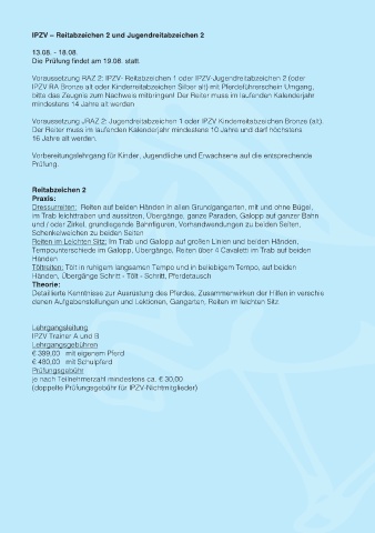 Voraussetzung RAZ 2: IPZV- Reitabzeichen 1 oder IPZV-Jugendreitabzeichen 2 (oder