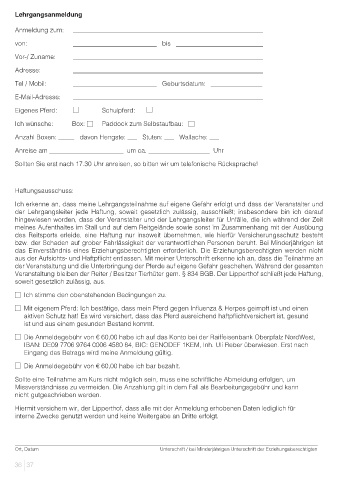 aktiven Schutz hat! Es wird versichert, dass das Pferd ausreichend haftpflichtversichert ist, gesund