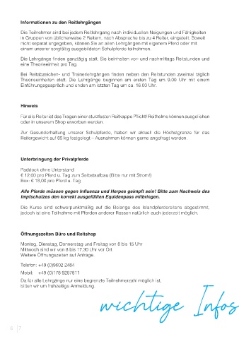 Informationen zu den Reitlehrgängen