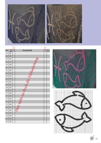 Fisch NR ZÄHLMUSTER 57 MF 58 HF 59 MF 60 HF 61 MF 62 HF 63 MF 64 HF 65 MF 66 HF 67 MF 68 HF Hier steht im Buch die Zählanleitung 69 MF 70 HF 71 MF 72 HF 73 MF 74 HF 75 MF 76 HF 77 MF 78 HF 79 MF 80 HF 81 MF 19