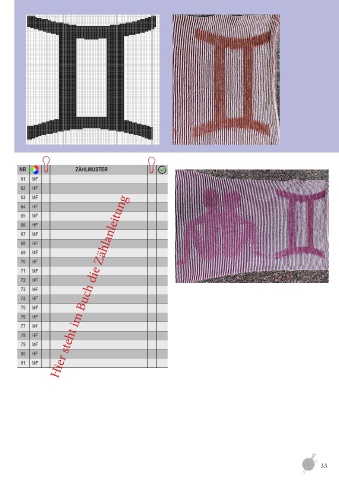 NR ZÄHLMUSTER 61 MF 62 HF 63 MF 64 HF 65 MF 66 HF 67 MF 68 HF 69 MF 70 HF 71 MF 72 HF 73 MF Hier steht im Buch die Zählanleitung 74 HF 75 MF 76 HF 77 MF 78 HF 79 MF 80 HF 81 MF 33