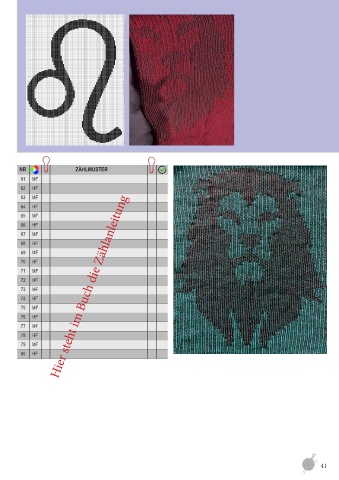 NR ZÄHLMUSTER 61 MF 62 HF 63 MF 64 HF 65 MF 66 HF 67 MF 68 HF 69 MF 70 HF 71 MF 72 HF 73 MF Hier steht im Buch die Zählanleitung 74 HF 75 MF 76 HF 77 MF 78 HF 79 MF 80 HF 41
