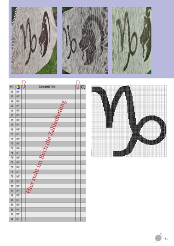 NR ZÄHLMUSTER 61 MF 62 HF 63 MF 64 HF 65 MF 66 HF 67 MF 68 HF 69 MF 70 HF 71 MF 72 HF 73 MF Hier steht im Buch die Zählanleitung 74 HF 75 MF 76 HF 77 MF 78 HF 79 MF 80 HF 81 MF 82 HF 83 MF 84 HF 85 MF 86 HF 87 MF 88 HF 61